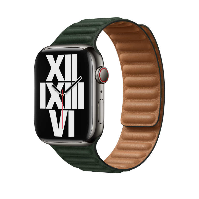 The Leather Link features handcrafted Roux Granada leather made in France. The strap elegantly wraps around the wrist and magically attaches with flexible moulded magnets that gently flex to help maintain a secure, comfortable fit throughout the day.
