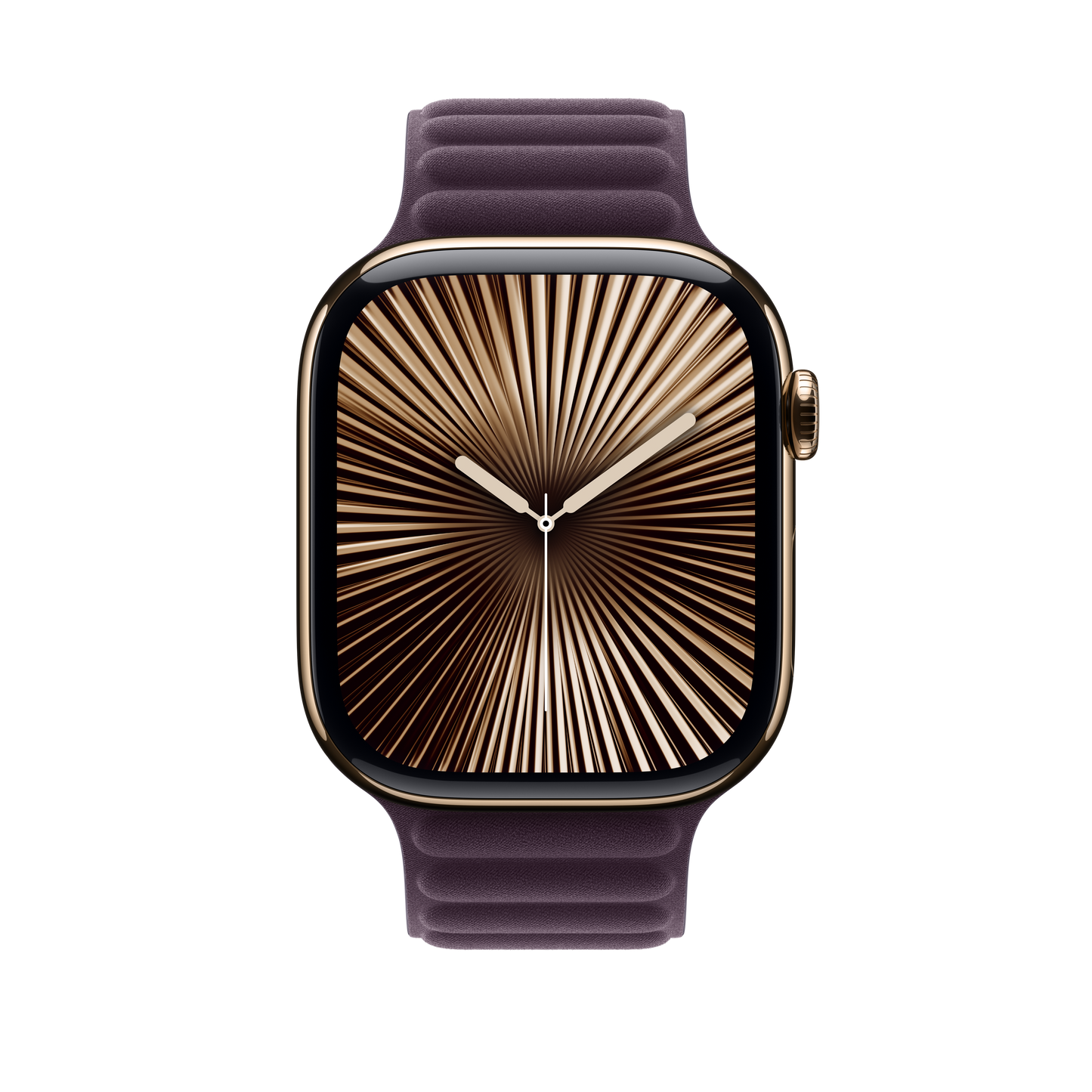 The Magnetic Link with FineWoven elegantly wraps around the wrist and magically attaches with moulded magnets that gently flex to help maintain security and comfort throughout the day. Made from a durable micro-twill, the FineWoven material has a soft, suede-like feel. It was also designed with the earth in mind — made from 68% post-consumer recycled content and significantly reducing carbon emissions compared to leather.
