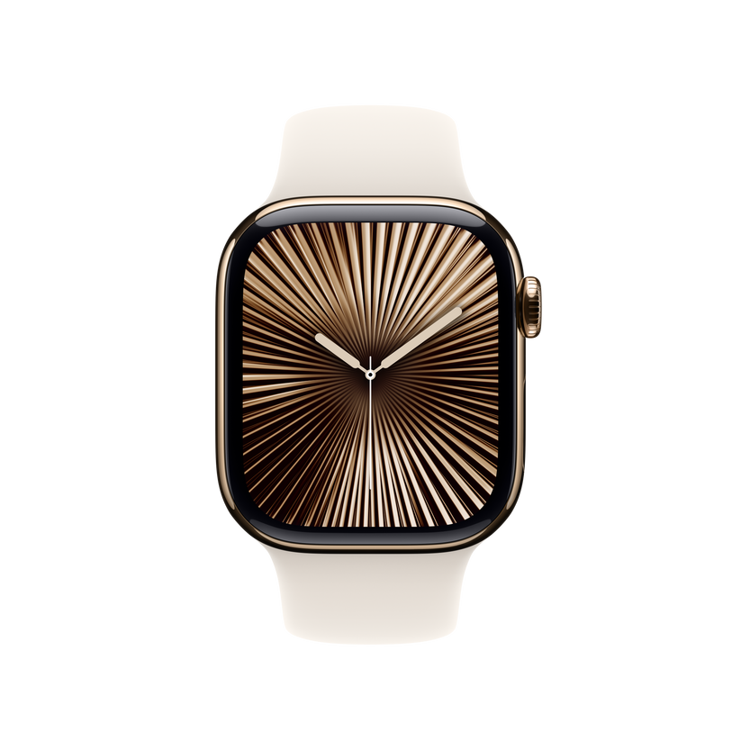 Made from a custom high-performance fluoroelastomer, the Sport Band is durable and strong, yet surprisingly soft. The smooth, dense material drapes elegantly across your wrist and feels comfortable next to your skin. An innovative pin-and-tuck closure ensures a clean fit.