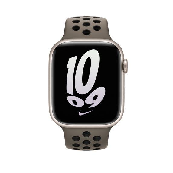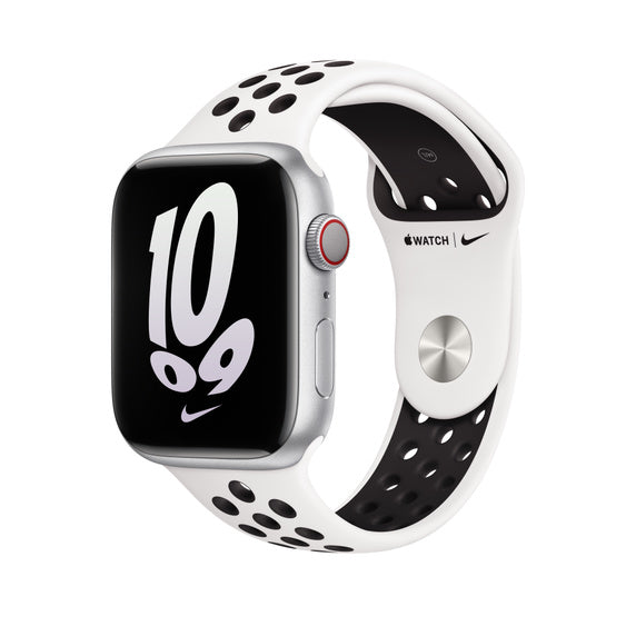 Made from a custom high-performance fluoroelastomer with compression-moulded perforations for breathability, the Nike Sport Band is durable and strong, yet surprisingly soft. The smooth, dense material drapes elegantly across your wrist and feels comfortable next to your skin. An innovative pin-and-tuck closure ensures a clean fit.