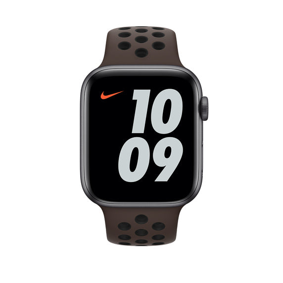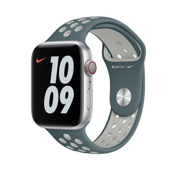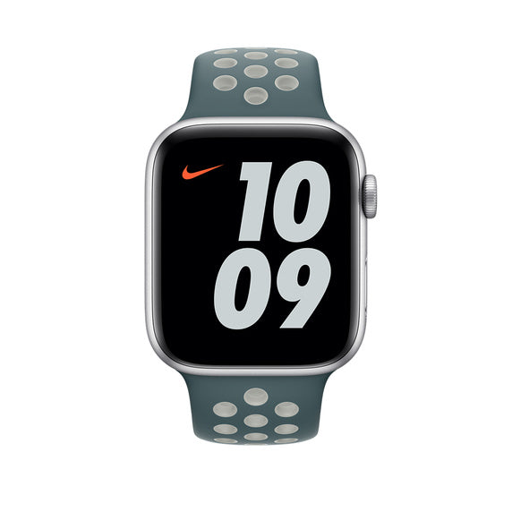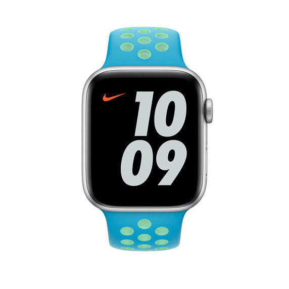 Made from a custom high-performance fluoroelastomer with compression-moulded perforations for breathability,the Nike Sport Band is durable and strong, yet surprisingly soft. The smooth, dense material drapes elegantly across your wrist and feels comfortable next to your skin. An innovative pin-and-tuck closure ensures a clean fit.