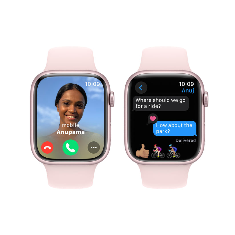 STAY CONNECTED — Send a text, take a call, listen to music and podcasts, use Siri and get notifications on the go. Apple Watch Series 9 (GPS) works with your iPhone or Wi-Fi to keep you connected.