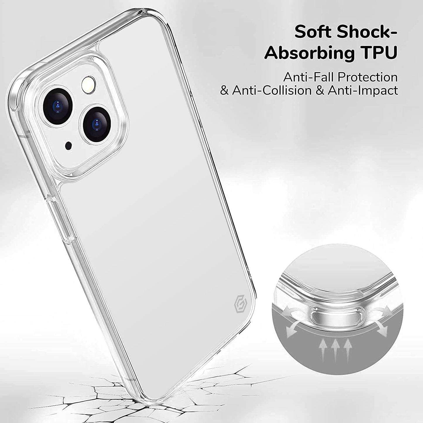 SUPER CLEAR & LIGHT-WEIGHT → Slim profile with precise cutouts and responsive buttons. Clear hard PC hard-sheel back case and TPU bumper offer grip and a slim profile. Lightweight and clear hard shell showcases the beauty of your Apple iPhone 13 and your elegant taste. Intense transparency flaunts original phone design. CLEAR SHOCK ABSORBENT →The Ultra Hybrid combines a shock-absorbing with a rigid back to maximize defensive features. Corners are guarded with Air Cushion Technology that takes all the shock from everyday impacts