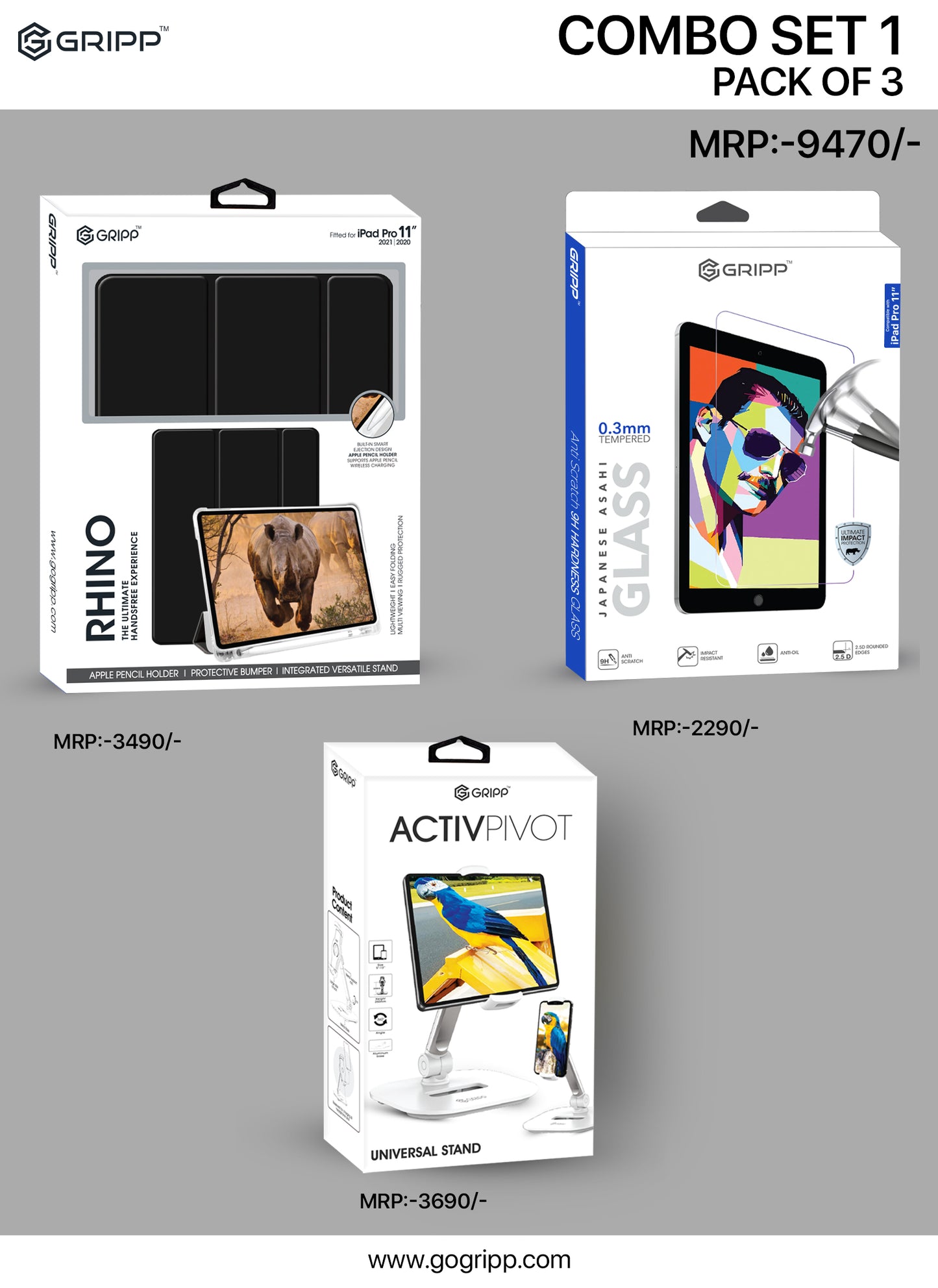GRIPP IPad 11 Case Combo Pack (GRIPP 11 Rhino Case + GRIPP 11 Tempered Glass + GRIPP IPad Stand)