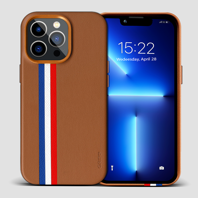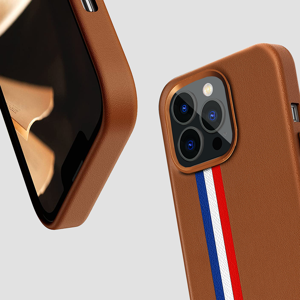 iPhone Compatibility: iPhone 13 Pro (6.1 inch) Premium Leather ? Our all new leather cases, better than ever, are made up of premium quality leather. Making the case look rugged, sturdy, studded and stunning while lining the interior with fabric for soft, smooth and padded comfort for your iPhone. VINTAGE ? GRIPP iPhone 13 Pro case all-around protection, crafted with embossed vertical contrasted stripe - Material Premium leatherette Hard Case back cover crafts and precise cutouts. The precisely measured cutouts for the power button, the profile toggle, and the volume buttons are designed for active responsiveness and ease of use. The top and the bottom of the case are open to access any third party accessory easily. In this high-quality Leather hard case your iPhone is good protected against the wear and tear of daily use. PREMIUM LEATHERETTE + SUPER SLIM ? Ultimate protection with smothh texture and luxuriantly case for iphone 13 pro, design, top quality leather finish adds an ultra-modern and stylish look to your phone. This sturdy case with provides total and effective protection. It is practical, installed easily on your iPhone without damaging it. Don’t hesitate! It offers an excellent price-quality ratio, premium leather phone cases. Each curve got the detailed attention to attain protection with the feel of leather. The edges of the case are carved 1 mm above the edge of your iPhone’s screen providing reinforced protection to the screen. An assisting perfect snug edge to edge fit to absorb the shock from the drops the phone get. The edges are hot pressed to make the leather case durable and last longer. The Signature ? From the basic to the fancy, we landed on a perfectly well-balanced design. The one-piece minimalist design that harmonizes the standard of the leather and the classics of the perfectly debossed.