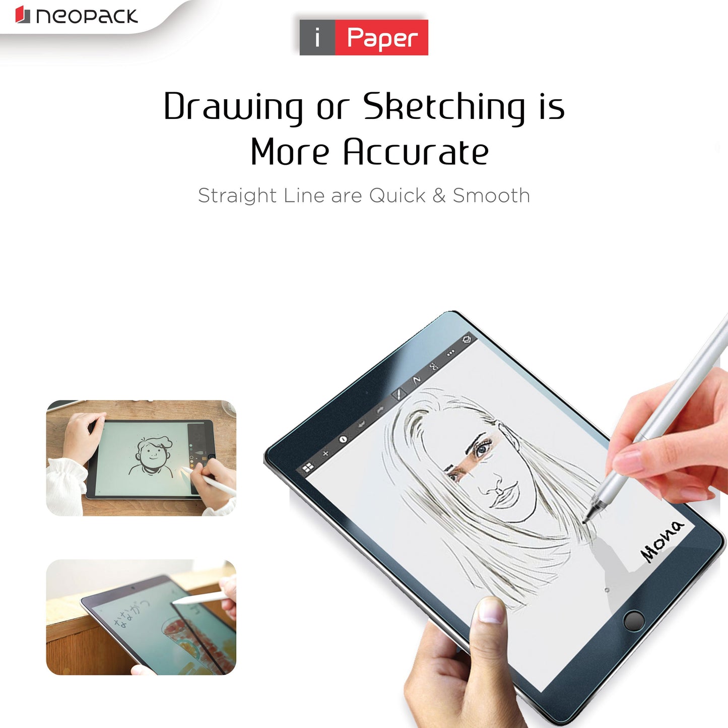 Excellent protective PET matte film, specially designed for those who draw with Apple Pencil or Other Active Stylus Pens. Turn Glass into Paper, ideal for writing, sketching, or drawing feeling like writing on paper, works paperless without losing the paper feelings. NO-Fingerprint Coating & Scratch Resistant, 3H hardness level matte surface for a cleaner screen which maintains the screen clear for enhanced viewing. Easy to install, “Airless" design with rounded edges and silicone skin uses a self-absorption adhesion, easy to push out the bubbles, and protects your screen from daily scratches.