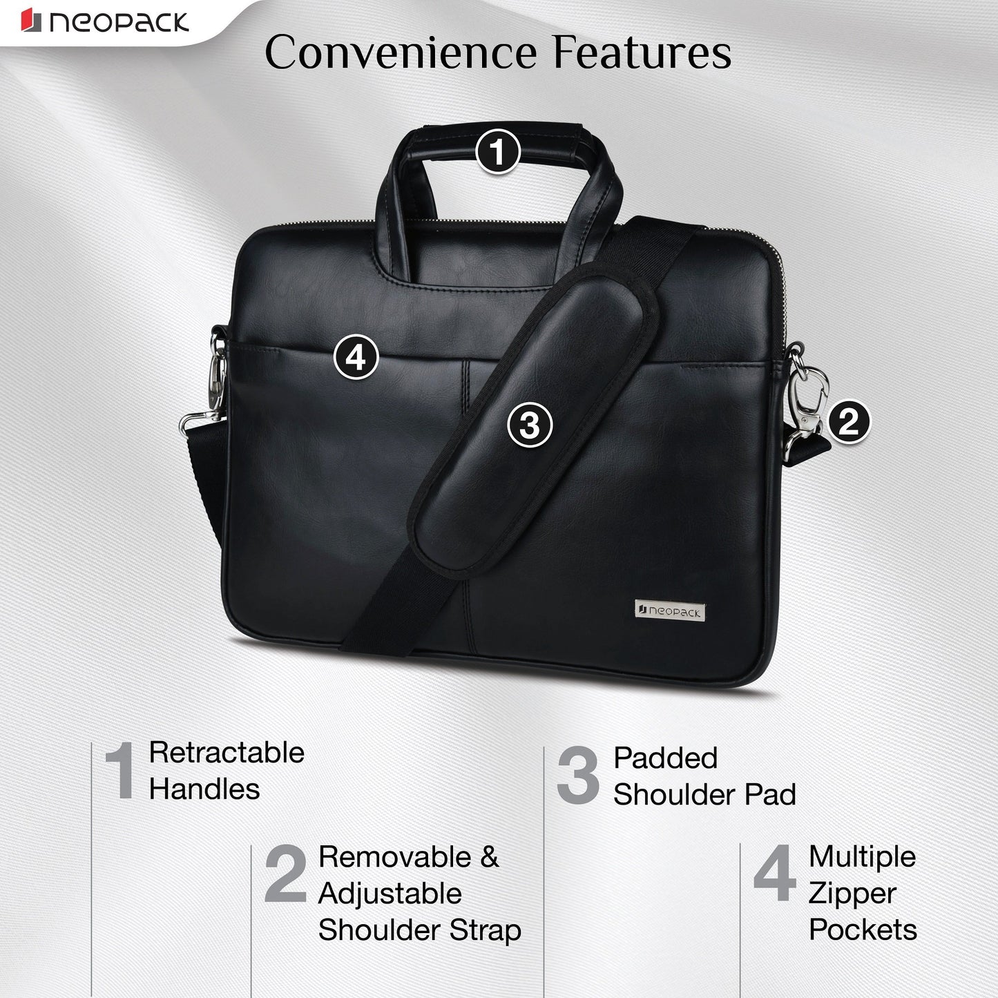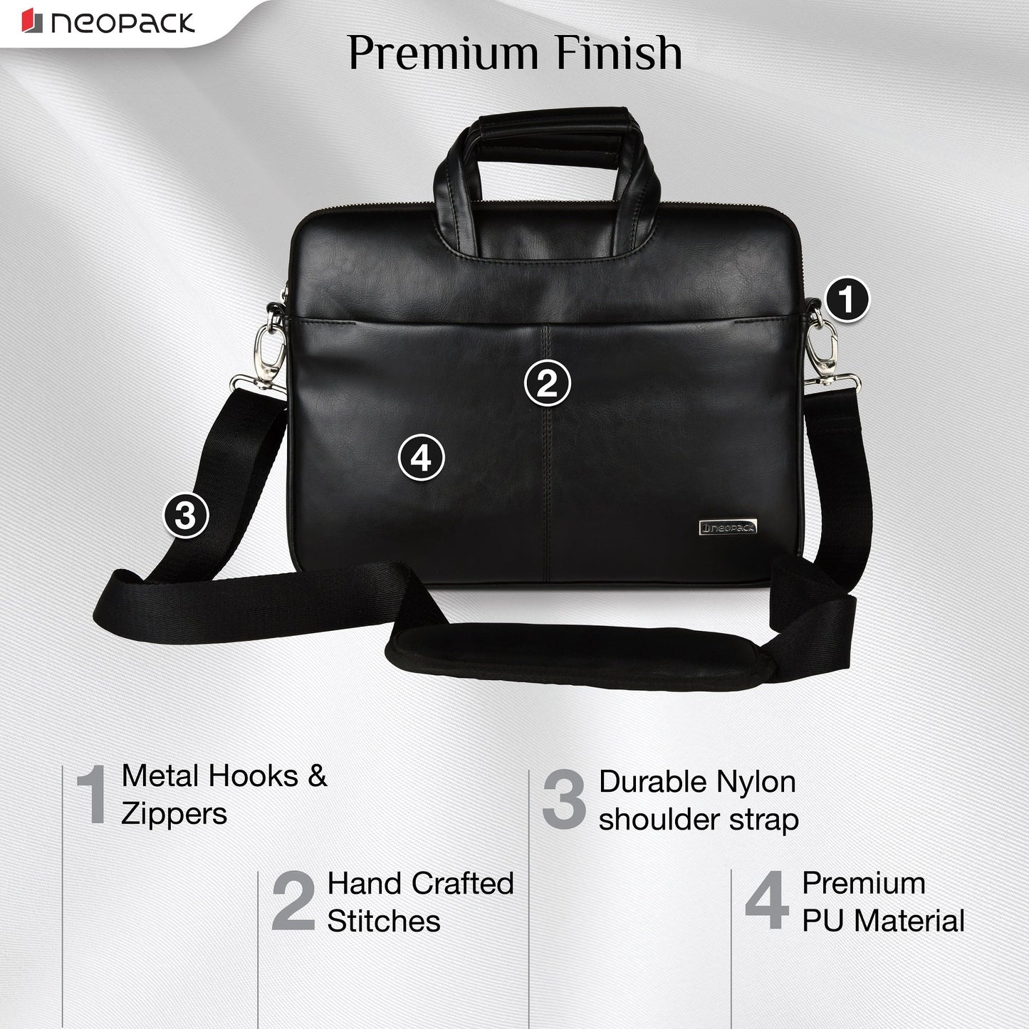 A Luxurious fusion of leatherette and highgrade nylon. Enhanced functionality with multi zipped organizer pockets. Cushioned quilted inner compartment. Super stylish sleeve to accentuate your class.