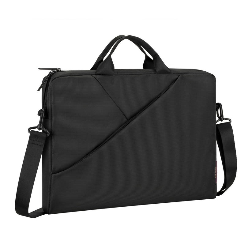 This Tivoli bag fits Laptops up to 15.6 inches. It embodies sophistication and professionalism with elegant black fabrics and a stylish external diagonal design. Protective, capacious and versatile, you will travel organised and prepared wherever you go. 15.6'' Laptop Bag. Product Features: • Ultra slim, compact bag is compatible with Laptops with screen up to 15.6". • Internal pocket for Tablets up to 10.1" and iPad®. • Padded Laptop compartment sides provide extra protection. • External pocket for accessories and smartphone. • Dual zipper pulls for easy, quick access. • Comfortable padded handles and a removable, adjustable strap.