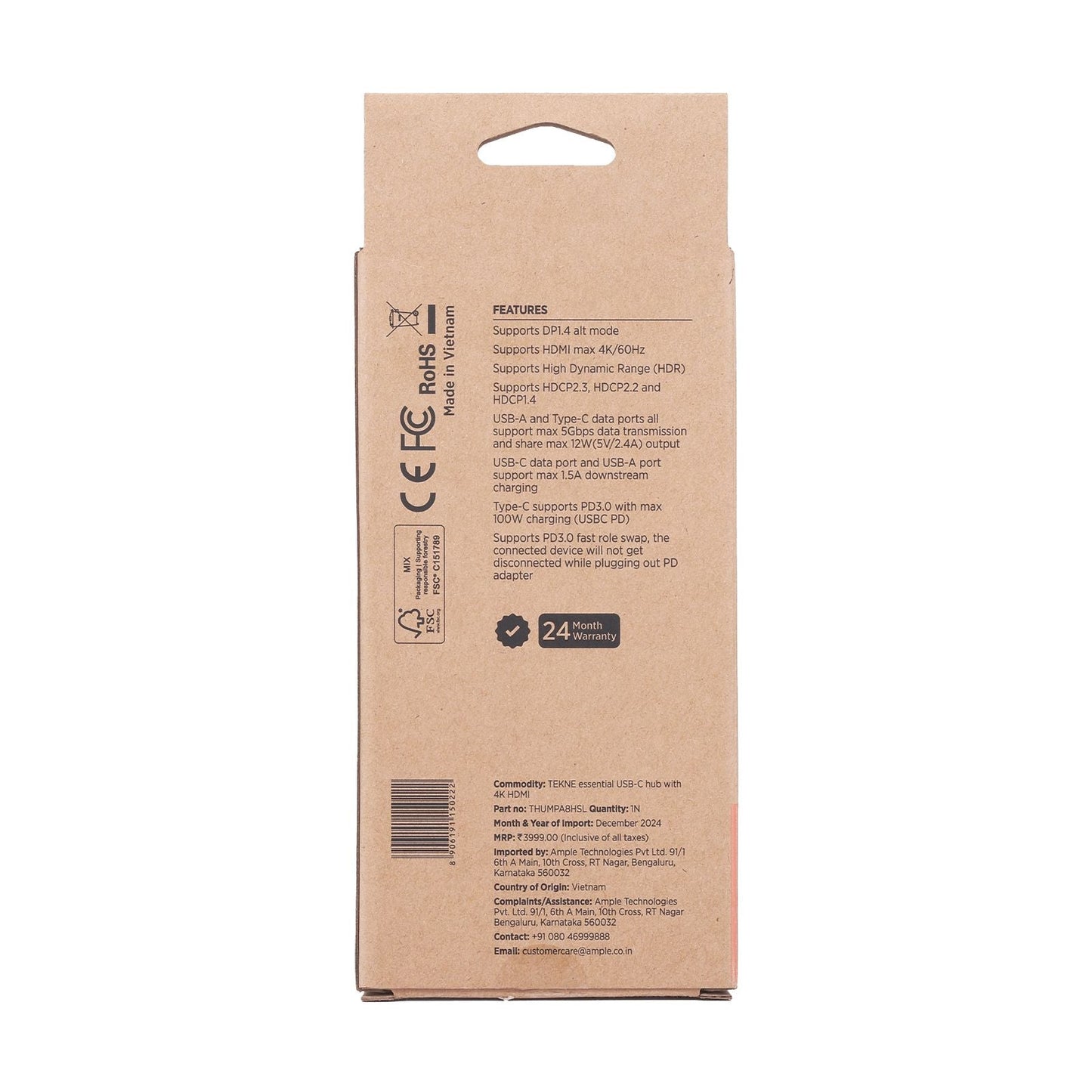 Tekne Essential USB-C Hub | 8-in-1 Multiport Adapter | 100W Fast Charg