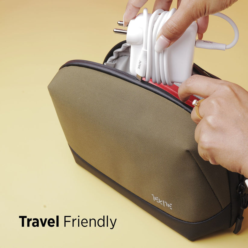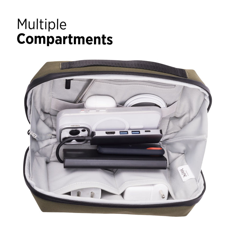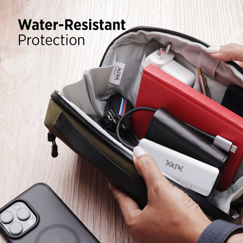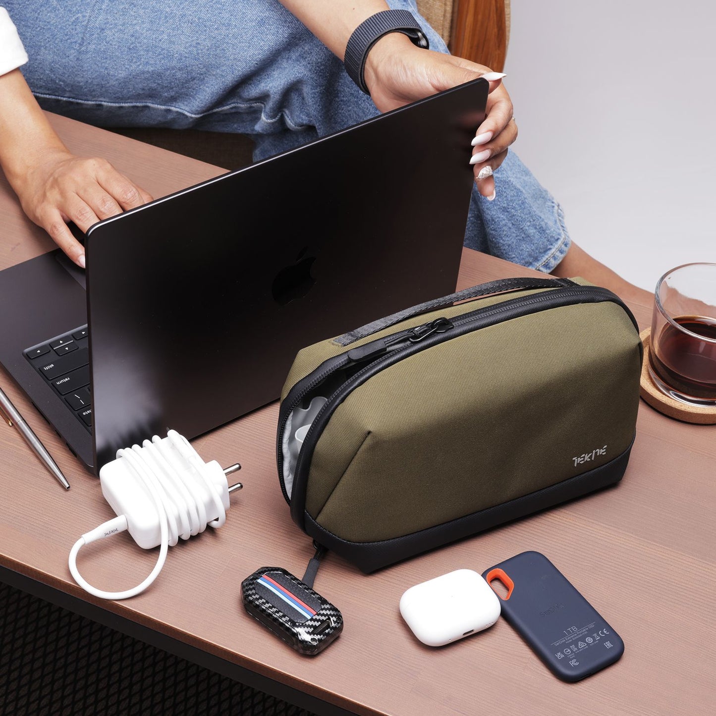 Tekne Gadget Organiser | Water-Resistant Tech Pouch with Multiple Compartments | Olive Green | Travel-Friendly