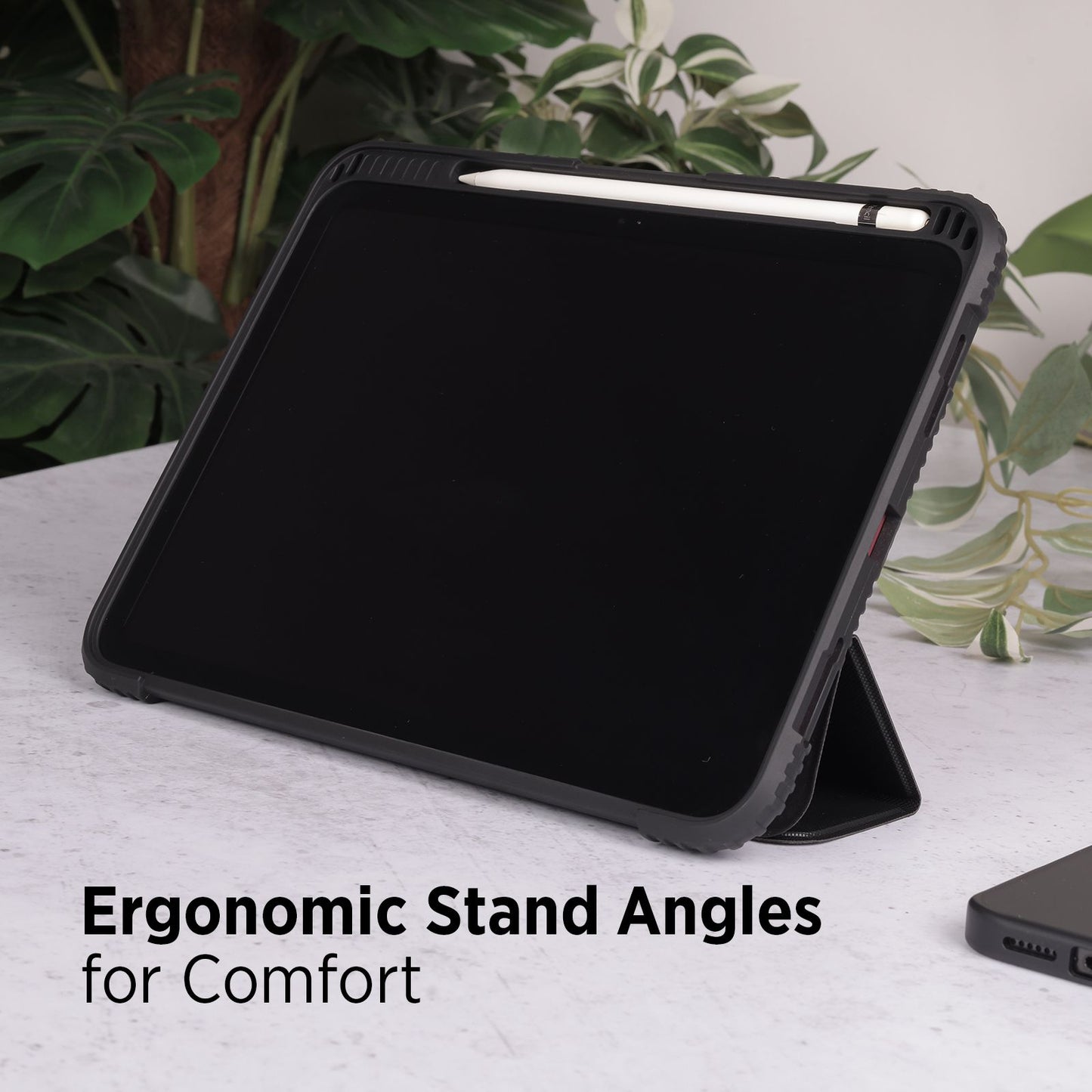 Tekne Shockproof Vegan Leather Case for iPad 10th Gen 10.9 inch | Stand Function | Drop Protection - Black