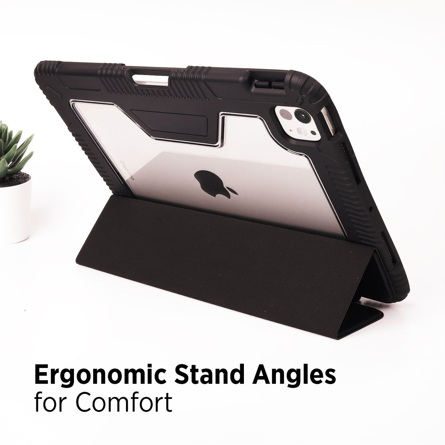 Tekne Shockproof Vegan Leather Case for iPad Pro 13 M4 | Stand Function | Drop Protection - Black