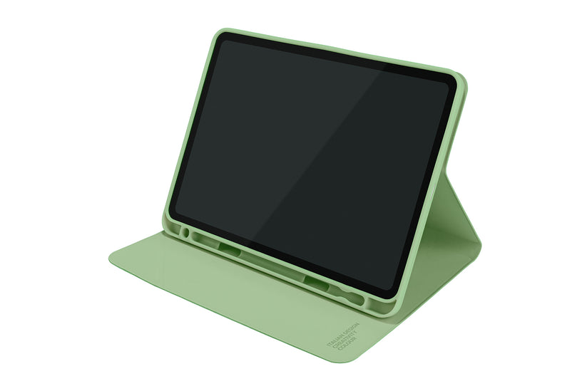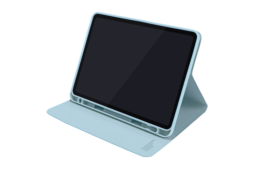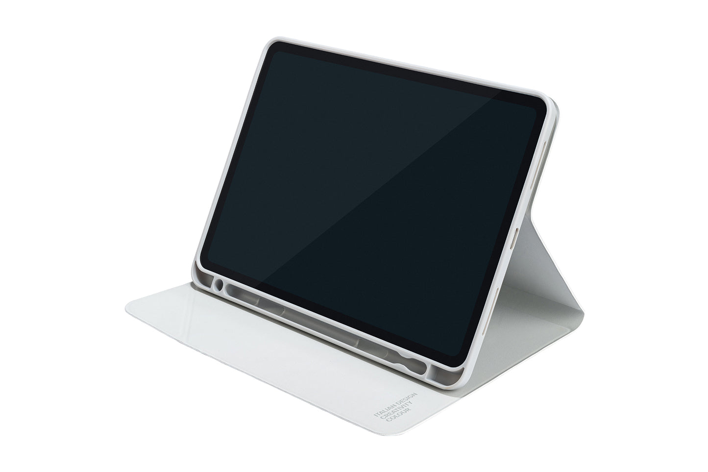 Semi-rigid back shell in TPU in satin finishing.Back panel convertible in a stand with different positions.Fold-and-shoot: the flap is foldable for easy access to the rear camera.Apple Pencil’s internal support.On/Off function.