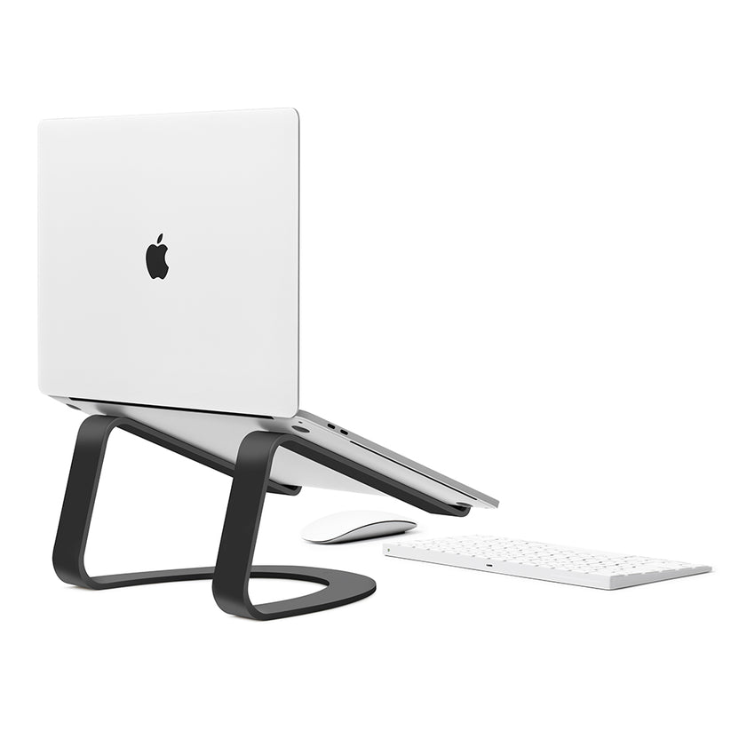 Curve is made of metal accented with non-slip silicone grips on the bottom and arms. The beautifully curved one-piece design has no extra parts, which means there’s nothing to lose, fall off or break. Curve is a fixed-height stand sturdy enough for you to type on it and interact with the Touch Bar on your MacBook Pro.